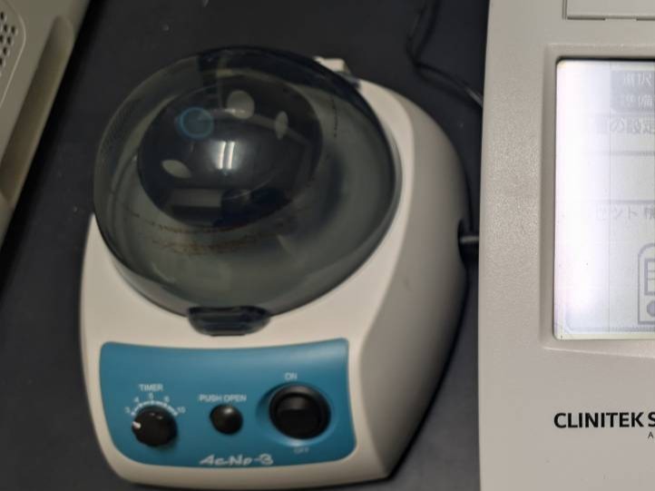 血液を高速回転させ、血清・血漿と血球に分ける装置です。
