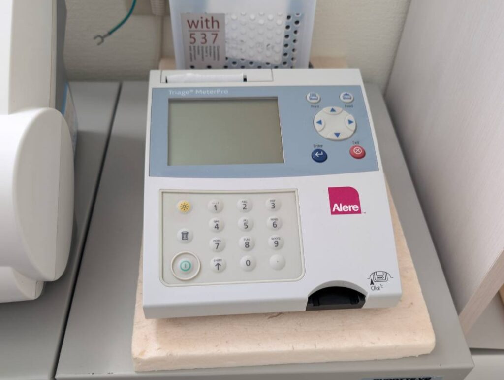 検査室には血液検査・心電図・エコーなどの機器を備え、必要な検査をできる限り院内で完結できるよう準備しています。