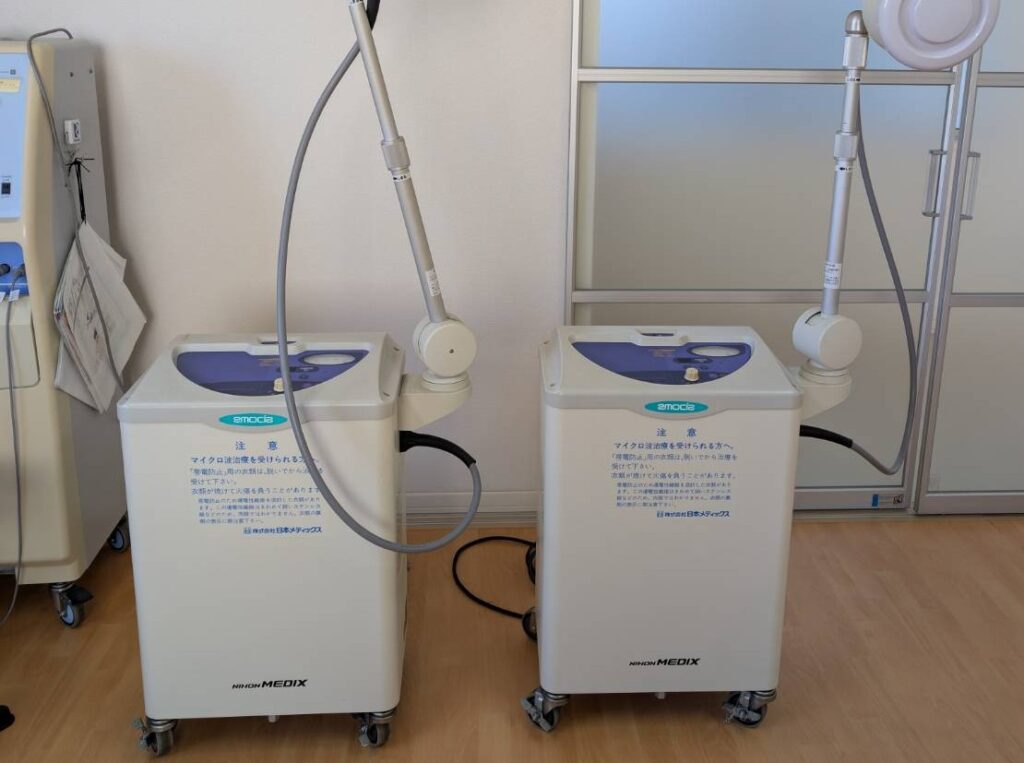 マイクロ波で筋肉や関節などの体の深部まで温める治療です。