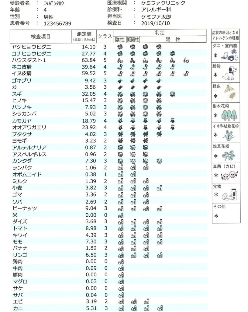 1回の検査で「自分がどのタイプのアレルギー体質なのか」を包括的に知ることができます。