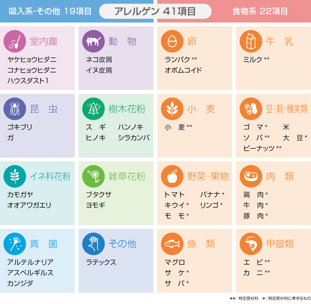 • 主要な花粉・食物・ダニ・動物などを網羅